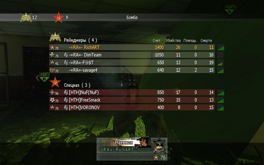 | Игра проходила на бомбе с повышенной сложностью с составом 4 на 4. При счете 10:6 один из игроков команды противника покинул игру, однако игра их даже улучшилась .. или наша ухудшилась, может быть расслабились и сдали 3 раунда. Тем не менее карту выиграли на счете 12:9. Таким образом, была сыграна только домашняя карта команды HTH, после которой они прекратили матч по причине нехватки участников. Обе стороны согласились признать победу RА с правом проигравшей стороны на реванш. | |||||||||||||||||||||