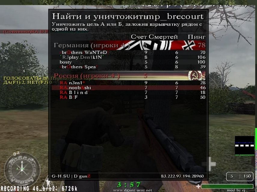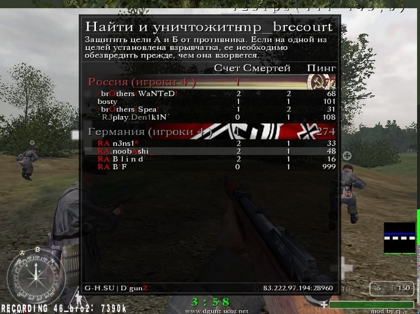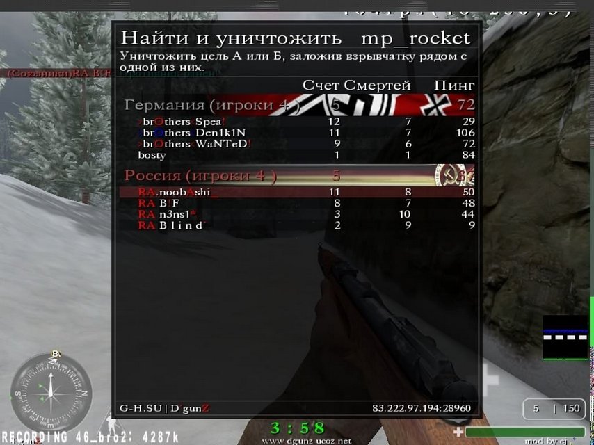 | Сначала играли на сервере brOthers, но его вскоре повесили=первого скриншота не получилось, продолжили играть на другом (напомню что первая сторона была выиграна со счётом 10-0). | ||||||||||||||||||||||||||