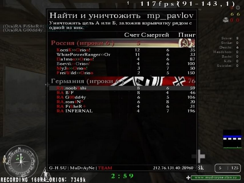 | OrioN tím: | Kostik, daimon, WPR, My3a,freiwild, boevik | |||||||||||||||||||||||||