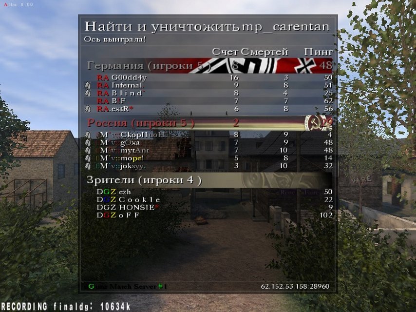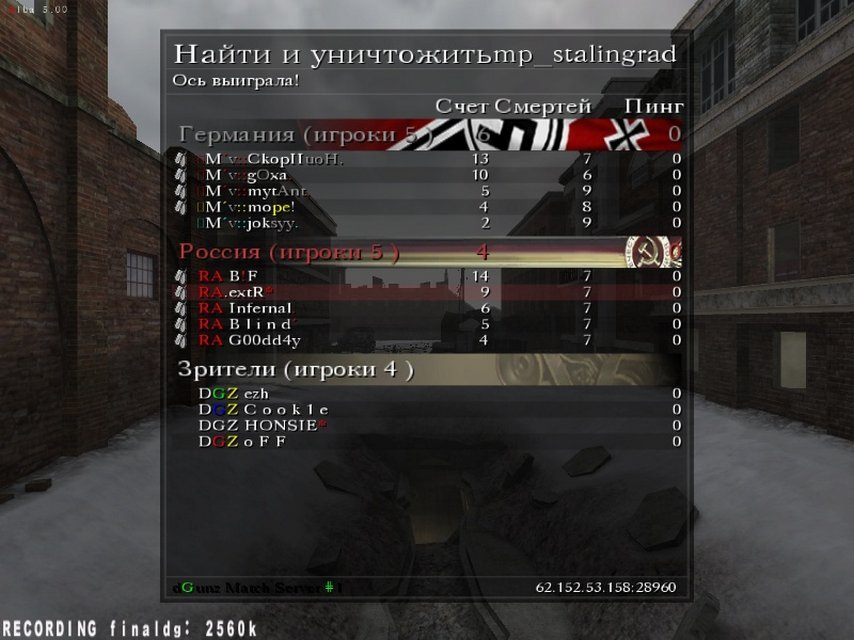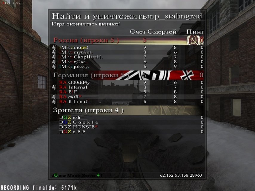 | Отмечу что в день финалной игры, все(практически) игроки отряда были на связи, все тренировались вместе. C основой команды и с её настроем не было проблем. Саму игру пришлось задержать из-за игрока команды соперника которого все ждали около 40-50 мин. это послужило неким раздражающим фактором для нас и некоторые из нас просто "перегорели" что отразилось в начале игры. Игра на первой карте выдалась через чур напряжённой, размены в каждом раунде и ситуации 1 vs. 1 были не редкостью, в итоге 9-11 не в нашу пользу, что послужило очень осторожной игре на карентане. Первые раунды 2 карты были очень напряжёнными, после обидного упущенного 3 раунда у нас опустились руки, счёт 1-2 на первых парах давал многим понять что "Red Army" посыпались во всех смыслах, но как это не парадоксально с этого момента мы в защите не отдали больше ни раунда команде M'v, делая общий счёт 17-13. За нападение старались играть ещё более слаженнее, не помешало добыть оставшиеся 4 очка даже тот факт что один из лидеров нашей команды (BiF) сильно лагал. Спасибо всем за игру, которая показалась мне весьма спокойной с нашей стороны и очень дисциплинированной с маленькими огрехами. |