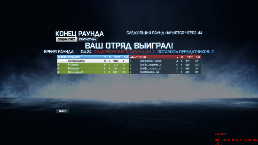 | Матч задержался из-за не корректных настроек сервера GBR. Пришлось идти на наш сервер. | ||||||||||||||||||||||||||||||||||||