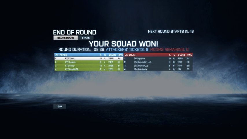 | Szerver: | http://battlelog.battlefield.com/bf3/ru/servers/show/3a95a7fc-f497-421f-8252-8426368eb218/Multiplay-Red-Army-Team-Server/ | ||||||||||||||||||||